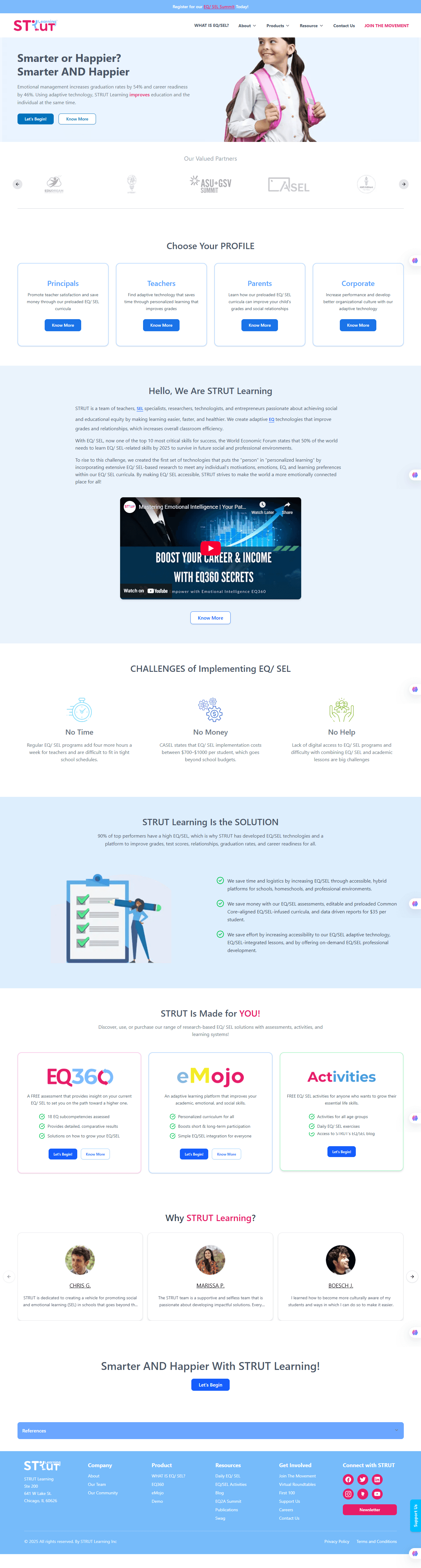 Learn2Strut is an educational platform that helps individuals and schools improve emotional intelligence (EQ) and social-emotional learning (SEL) through adaptive, research-based tools, assessments, and curricula.